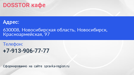 DOSSTOR, кафе по адресу 630008, Новосибирская область, Новосибирск, Красноармейская, 97 в дальнейшем Организация, размещена в следующих категориях: