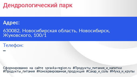 Дендрологический парк по адресу 630082, Новосибирская область, Новосибирск, Жуковского, 100/1 в дальнейшем Организация, размещена в следующих категориях: