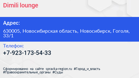 Dimili lounge по адресу 630005, Новосибирская область, Новосибирск, Гоголя, 33/1 в дальнейшем Организация, размещена в следующих категориях: