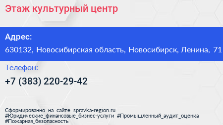 Этаж, культурный центр по адресу 630132, Новосибирская область, Новосибирск, Ленина, 71 в дальнейшем Организация, размещена в следующих категориях: