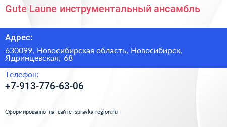 Gute Laune, инструментальный ансамбль по адресу 630099, Новосибирская область, Новосибирск, Ядринцевская, 68 в дальнейшем Организация, размещена в следующих категориях: