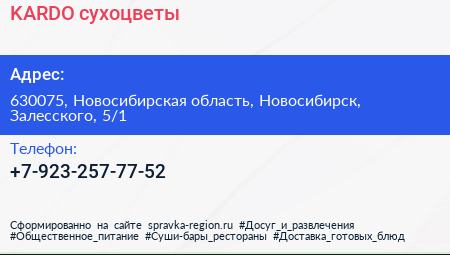 KARDO сухоцветы по адресу 630075, Новосибирская область, Новосибирск, Залесского, 5/1 в дальнейшем Организация, размещена в следующих категориях: