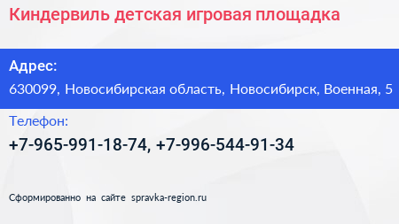 Киндервиль, детская игровая площадка по адресу 630099, Новосибирская область, Новосибирск, Военная, 5 в дальнейшем Организация, размещена в следующих категориях: