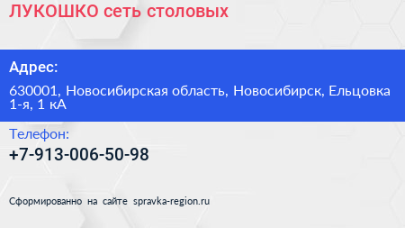 ЛУКОШКО, сеть столовых по адресу 630001, Новосибирская область, Новосибирск, Ельцовка 1-я, 1 кА в дальнейшем Организация, размещена в следующих категориях: