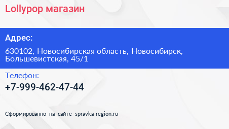 Lollypop, магазин по адресу 630102, Новосибирская область, Новосибирск, Большевистская, 45/1 в дальнейшем Организация, размещена в следующих категориях: