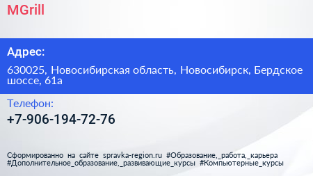 MGrill по адресу 630025, Новосибирская область, Новосибирск, Бердское шоссе, 61а в дальнейшем Организация, размещена в следующих категориях: