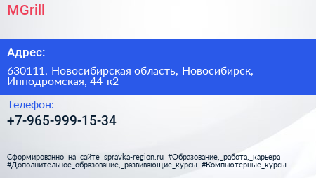 MGrill по адресу 630111, Новосибирская область, Новосибирск, Ипподромская, 44 к2 в дальнейшем Организация, размещена в следующих категориях: