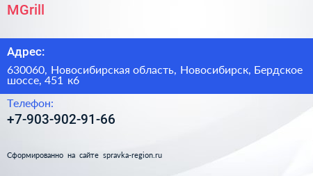 MGrill по адресу 630060, Новосибирская область, Новосибирск, Бердское шоссе, 451 к6 в дальнейшем Организация, размещена в следующих категориях: