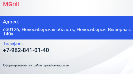MGrill по адресу 630126, Новосибирская область, Новосибирск, Выборная, 140а в дальнейшем Организация, размещена в следующих категориях: