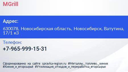 MGrill по адресу 630078, Новосибирская область, Новосибирск, Ватутина, 17/1 к3 в дальнейшем Организация, размещена в следующих категориях:
