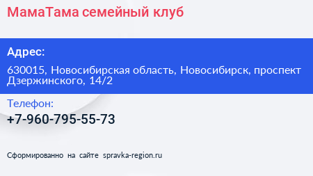 МамаТама, семейный клуб по адресу 630015, Новосибирская область, Новосибирск, проспект Дзержинского, 14/2 в дальнейшем Организация, размещена в следующих категориях: