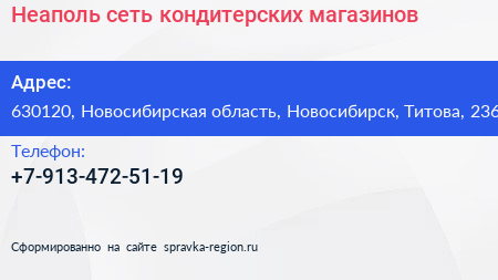Неаполь, сеть кондитерских магазинов по адресу 630120, Новосибирская область, Новосибирск, Титова, 236 в дальнейшем Организация, размещена в следующих категориях: