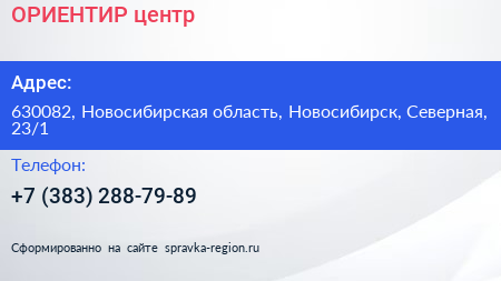 ОРИЕНТИР, центр по адресу 630082, Новосибирская область, Новосибирск, Северная, 23/1 в дальнейшем Организация, размещена в следующих категориях: