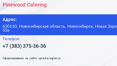 Pinewood Catering по адресу 630110, Новосибирская область, Новосибирск, Новая Заря, 53а в дальнейшем Организация, размещена в следующих категориях: