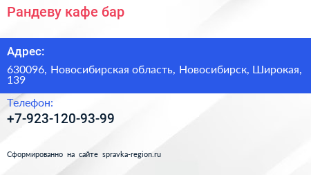 Рандеву, кафе-бар по адресу 630096, Новосибирская область, Новосибирск, Широкая, 139 в дальнейшем Организация, размещена в следующих категориях: