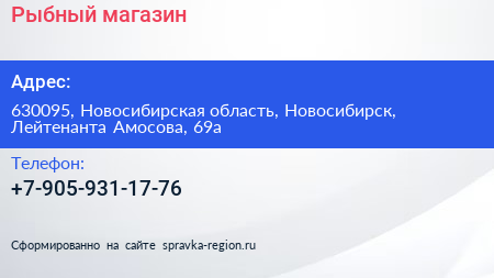 Рыбный магазин по адресу 630095, Новосибирская область, Новосибирск, Лейтенанта Амосова, 69а в дальнейшем Организация, размещена в следующих категориях: