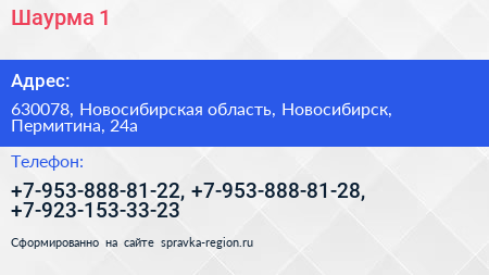 Шаурма №1 по адресу 630078, Новосибирская область, Новосибирск, Пермитина, 24а в дальнейшем Организация, размещена в следующих категориях: