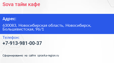 Sova, тайм-кафе по адресу 630083, Новосибирская область, Новосибирск, Большевистская, 96/1 в дальнейшем Организация, размещена в следующих категориях: