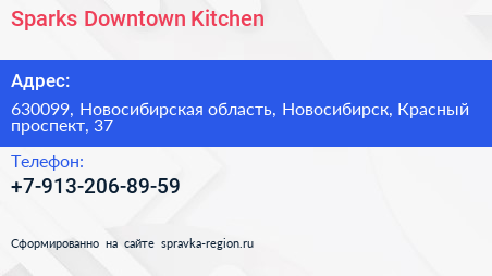 Sparks Downtown Kitchen по адресу 630099, Новосибирская область, Новосибирск, Красный проспект, 37 в дальнейшем Организация, размещена в следующих категориях: