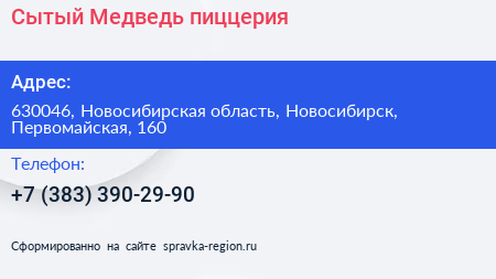 Сытый Медведь, пиццерия по адресу 630046, Новосибирская область, Новосибирск, Первомайская, 160 в дальнейшем Организация, размещена в следующих категориях: