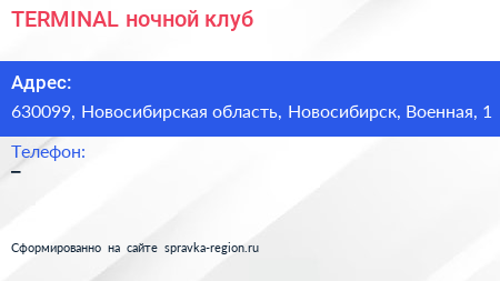 TERMINAL, ночной клуб по адресу 630099, Новосибирская область, Новосибирск, Военная, 1 в дальнейшем Организация, размещена в следующих категориях: