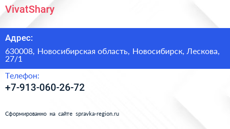 VivatShary по адресу 630008, Новосибирская область, Новосибирск, Лескова, 27/1 в дальнейшем Организация, размещена в следующих категориях: