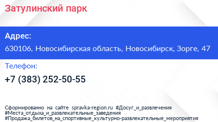 Затулинский парк по адресу 630106, Новосибирская область, Новосибирск, Зорге, 47 в дальнейшем Организация, размещена в следующих категориях: