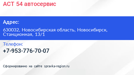 АСТ-54, автосервис по адресу 630032, Новосибирская область, Новосибирск, Станционная, 13/1 в дальнейшем Организация, размещена в следующих категориях: