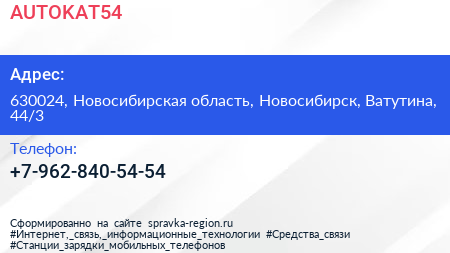 AUTOKAT54 по адресу 630024, Новосибирская область, Новосибирск, Ватутина, 44/3 в дальнейшем Организация, размещена в следующих категориях: