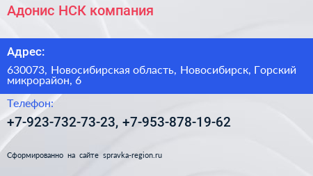 Адонис-НСК, компания по адресу 630073, Новосибирская область, Новосибирск, Горский микрорайон, 6 в дальнейшем Организация, размещена в следующих категориях: