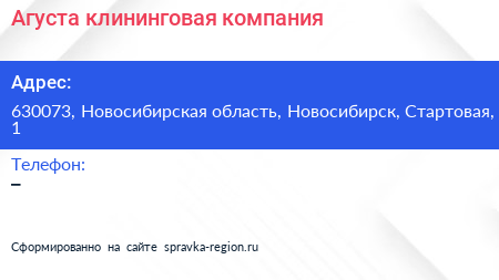 Агуста, клининговая компания по адресу 630073, Новосибирская область, Новосибирск, Стартовая, 1 в дальнейшем Организация, размещена в следующих категориях: