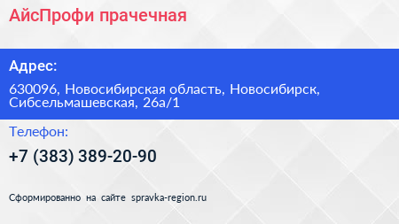 АйсПрофи, прачечная по адресу 630096, Новосибирская область, Новосибирск, Сибсельмашевская, 26а/1 в дальнейшем Организация, размещена в следующих категориях: