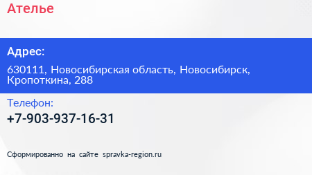 Ателье по адресу 630111, Новосибирская область, Новосибирск, Кропоткина, 288 в дальнейшем Организация, размещена в следующих категориях: