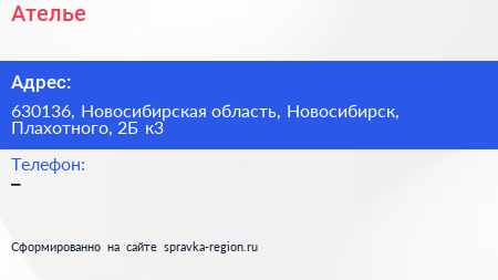 Ателье по адресу 630136, Новосибирская область, Новосибирск, Плахотного, 2Б к3 в дальнейшем Организация, размещена в следующих категориях: