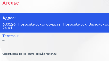 Ателье по адресу 630126, Новосибирская область, Новосибирск, Вилюйская, 24 к1 в дальнейшем Организация, размещена в следующих категориях: