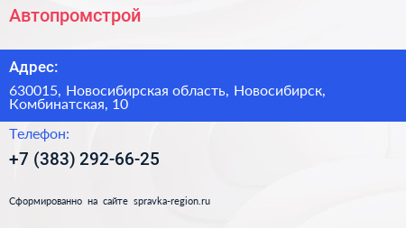 Автопромстрой по адресу 630015, Новосибирская область, Новосибирск, Комбинатская, 10 в дальнейшем Организация, размещена в следующих категориях:
