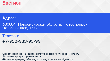 Бастион по адресу 630004, Новосибирская область, Новосибирск, Челюскинцев, 14/2 в дальнейшем Организация, размещена в следующих категориях: