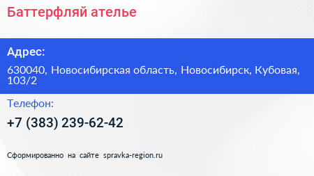 Баттерфляй, ателье по адресу 630040, Новосибирская область, Новосибирск, Кубовая, 103/2 в дальнейшем Организация, размещена в следующих категориях: