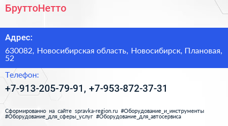 БруттоНетто по адресу 630082, Новосибирская область, Новосибирск, Плановая, 52 в дальнейшем Организация, размещена в следующих категориях: