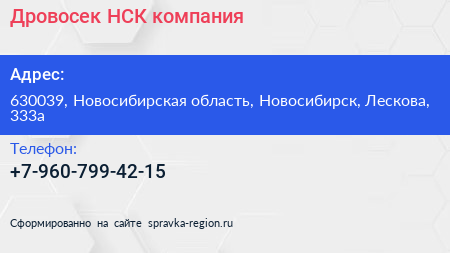 Дровосек-НСК, компания по адресу 630039, Новосибирская область, Новосибирск, Лескова, 333а в дальнейшем Организация, размещена в следующих категориях: