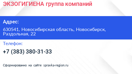 ЭКЗОГИГИЕНА, группа компаний по адресу 630541, Новосибирская область, Новосибирск, Раздольная, 22 в дальнейшем Организация, размещена в следующих категориях: