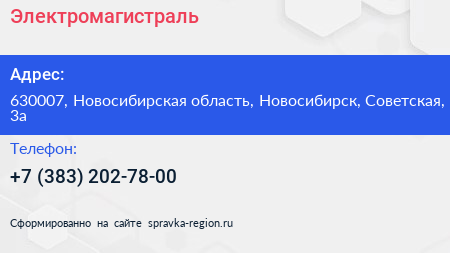 Электромагистраль по адресу 630007, Новосибирская область, Новосибирск, Советская, 3а в дальнейшем Организация, размещена в следующих категориях: