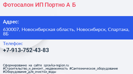 Фотосалон, ИП Портно А.Б. по адресу 630007, Новосибирская область, Новосибирск, Спартака, 8Б в дальнейшем Организация, размещена в следующих категориях: