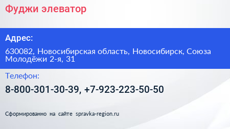 Фуджи элеватор по адресу 630082, Новосибирская область, Новосибирск, Союза Молодёжи 2-я, 31 в дальнейшем Организация, размещена в следующих категориях: