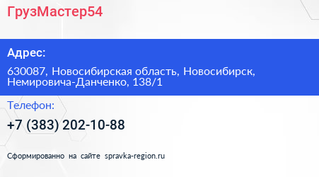 ГрузМастер54 по адресу 630087, Новосибирская область, Новосибирск, Немировича-Данченко, 138/1 в дальнейшем Организация, размещена в следующих категориях: