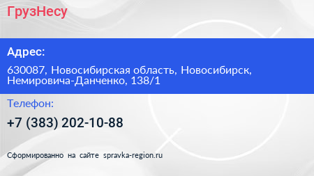 ГрузНесу по адресу 630087, Новосибирская область, Новосибирск, Немировича-Данченко, 138/1 в дальнейшем Организация, размещена в следующих категориях: