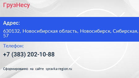 ГрузНесу по адресу 630132, Новосибирская область, Новосибирск, Сибирская, 57 в дальнейшем Организация, размещена в следующих категориях: