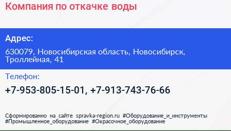 Компания по откачке воды по адресу 630079, Новосибирская область, Новосибирск, Троллейная, 41 в дальнейшем Организация, размещена в следующих категориях: