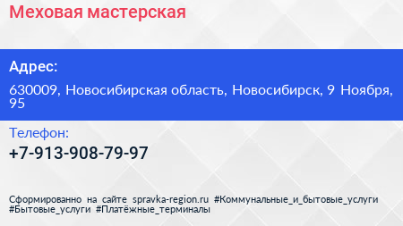 Меховая мастерская по адресу 630009, Новосибирская область, Новосибирск, 9 Ноября, 95 в дальнейшем Организация, размещена в следующих категориях: