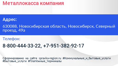 Металлокасса, компания по адресу 630088, Новосибирская область, Новосибирск, Северный проезд, 49а в дальнейшем Организация, размещена в следующих категориях: